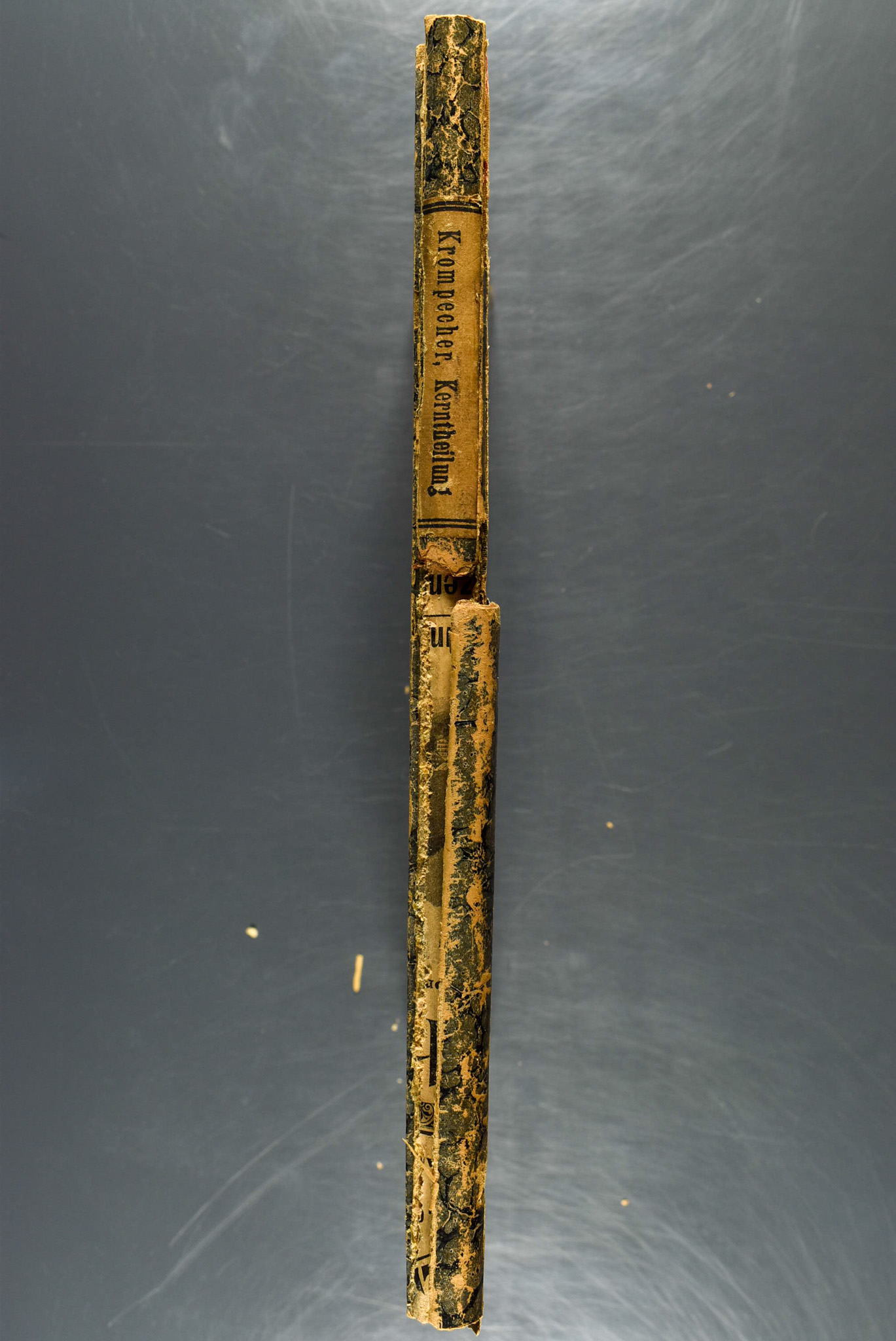 Krompecher, Edmund: Die mehrfache indirekte Kerntheilung. Wiesbaden, J. F. Bergmann, 1895. 9 (3 doppelbl.-gr.) lith. Tafeln, (1 Bl.), S. (227)-275 S. Marmorierter Pappband der Zeit (leicht berieben, Rücken gelöst). Vorderes Innengelenk geplatzt. Titel mit handschriftlicher Widmung. Zu Beginn leicht fleckig, sonst innen sauber und gut erhalten. (Mittheilung aus dem pathologisch-histologischen Institut der Kgl. Ung. Universität Budapest).