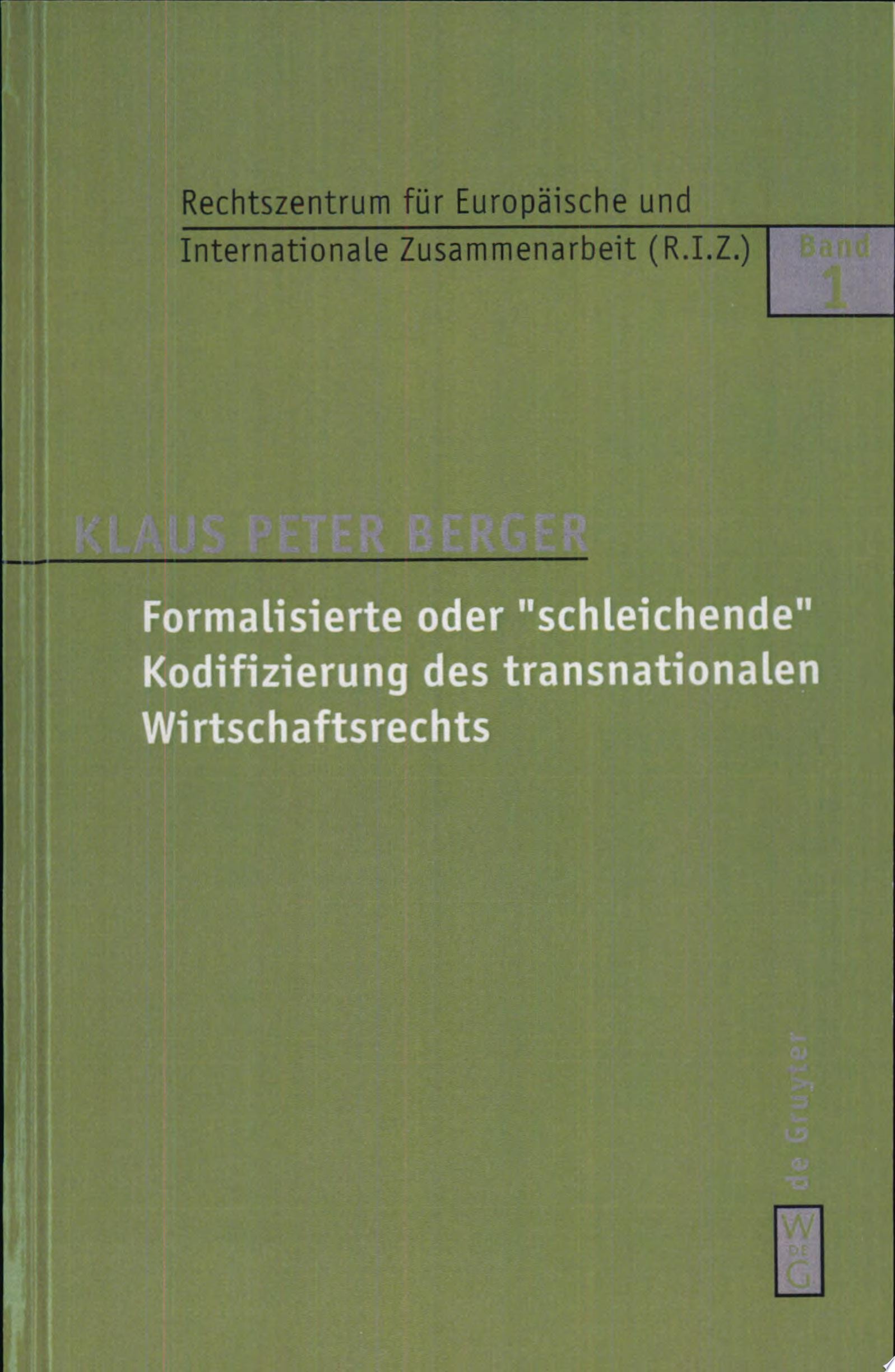 Berger, Klaus Peter: Formalisierte oder „schleichende“ Kodifizierung des transnationalen Wirtschaftsrechts zu den methodischen und praktischen Grundlagen der lex mercatoria. 1996 ed. Walter de Gruyter, 1996. 16 x 23 cm. 294 S. Hardcover.
