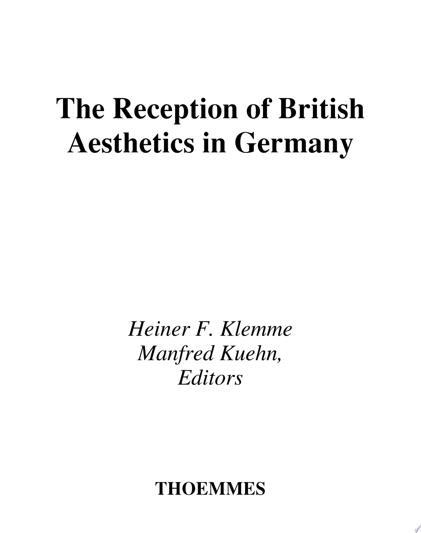 Klemme, The reception of British aesthetics in Germany seven significant transla