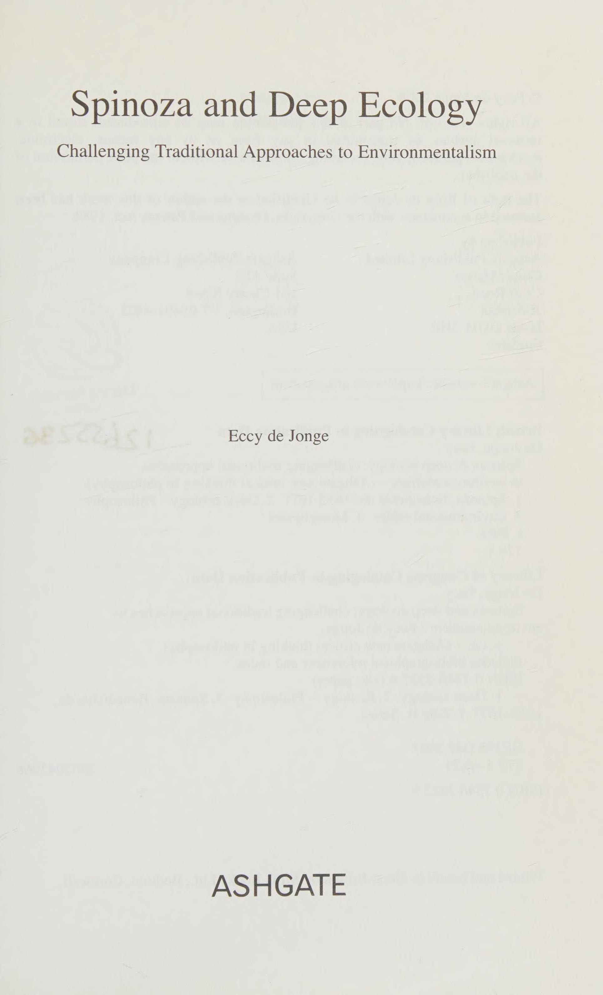Jonge, Spinoza and Deep Ecology: Challenging Traditional Approaches to Environme…