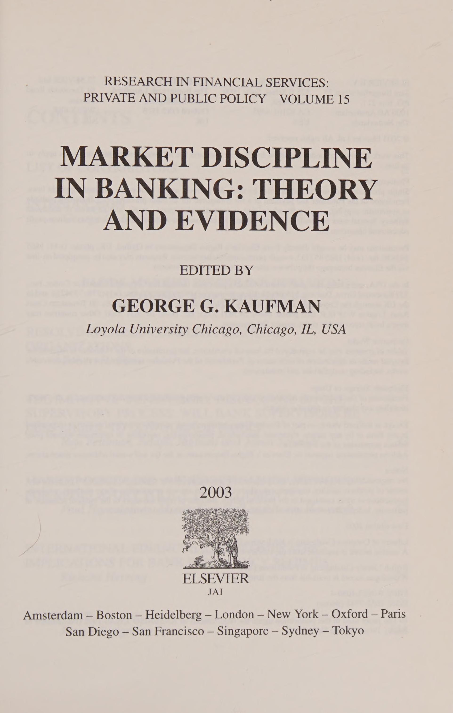 Kaufman, Market Discipline in Banking: Theory and Evidence (Research in Financia