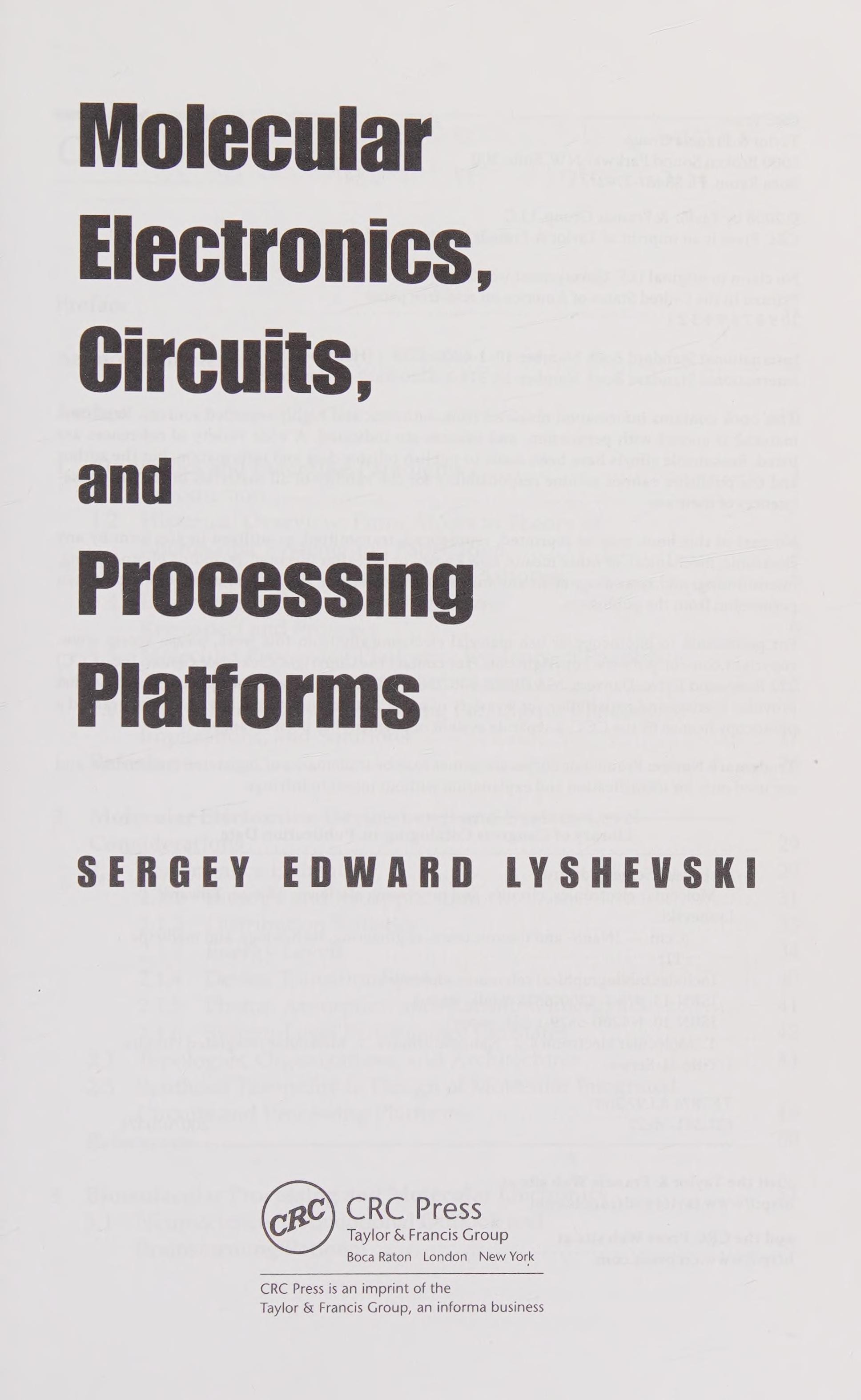 Lyshevski, Sergey Edward: Molecular Electronics, Circuits, and Processing Platforms (Nano- and Microscience, Engineering, Technology and Medicine). 1st ed. CRC Press, 2007. 16 x 24 cm. 296 pages. Hardcover. Versand aus Deutschland / We dispatch from Germany via Air Mail. Einband bestoßen, daher Mängelexemplar gestempelt, sonst sehr guter Zustand. Imperfect copy due to slightly bumped cover, apart from this in very good condition. Stamped.