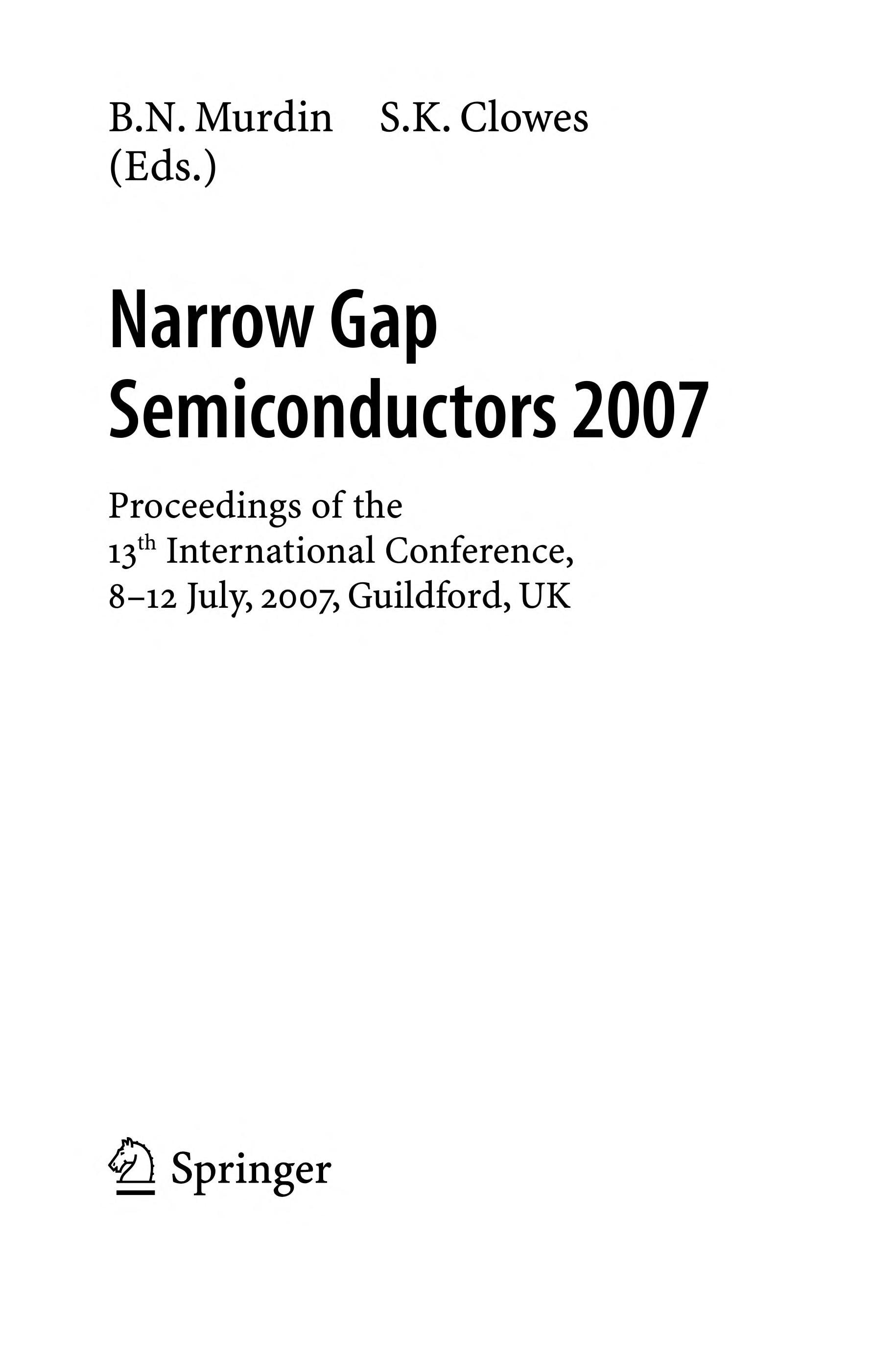 International Conference on Narrow-Gap Semiconductors and Related Materials (13th 2007 Guildford, England): Narrow Gap Semiconductors 2007: Proceedings of the 13th International Conference, 8-12 July, 2007, Guildford, UK (Springer Proceedings in Physics, 119). 2008th ed. Springer, 2008. 16 x 24 cm. 232 pages. Hardcover. Versand aus Deutschland / We dispatch from Germany via Air Mail. Einband bestoßen, daher Mängelexemplar gestempelt, sonst sehr guter Zustand. Imperfect copy due to slightly bumped cover, apart from this in very good condition. Stamped.