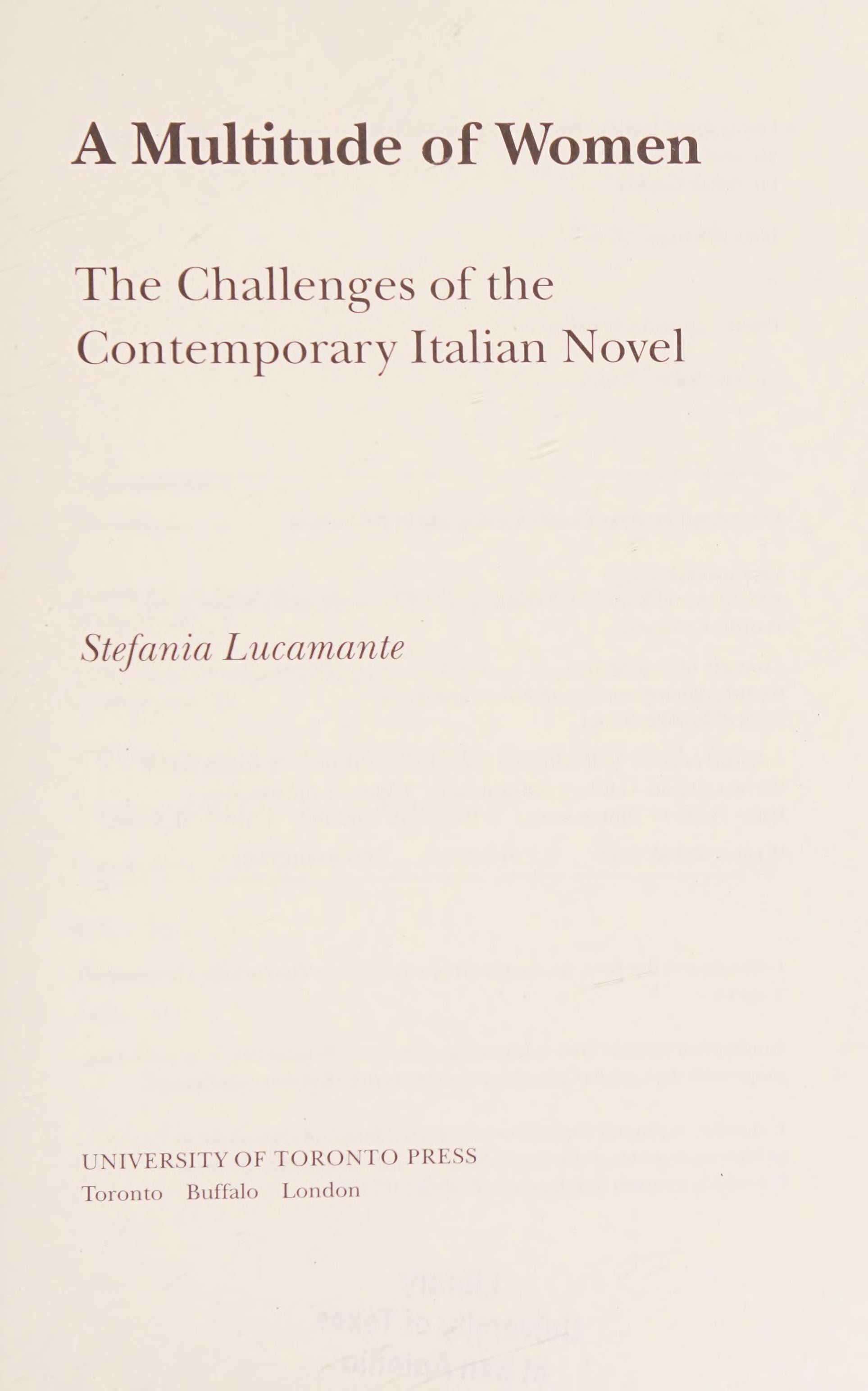 Lucamante, A Multitude of Women: The Challenges of the Contemporary Italian Nove…