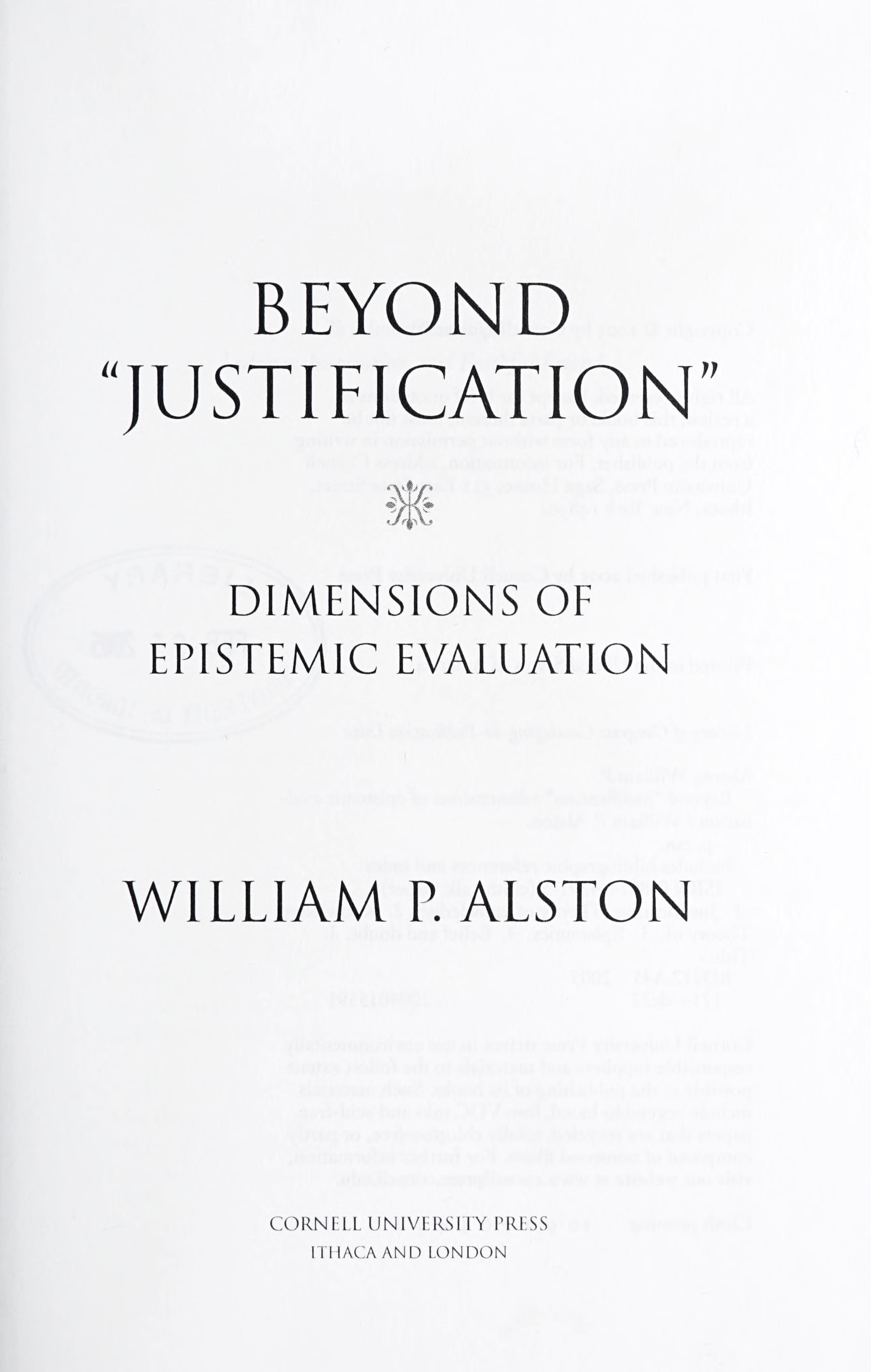 Alston, Beyond “Justification”: Dimensions of Epistemic Evaluation.