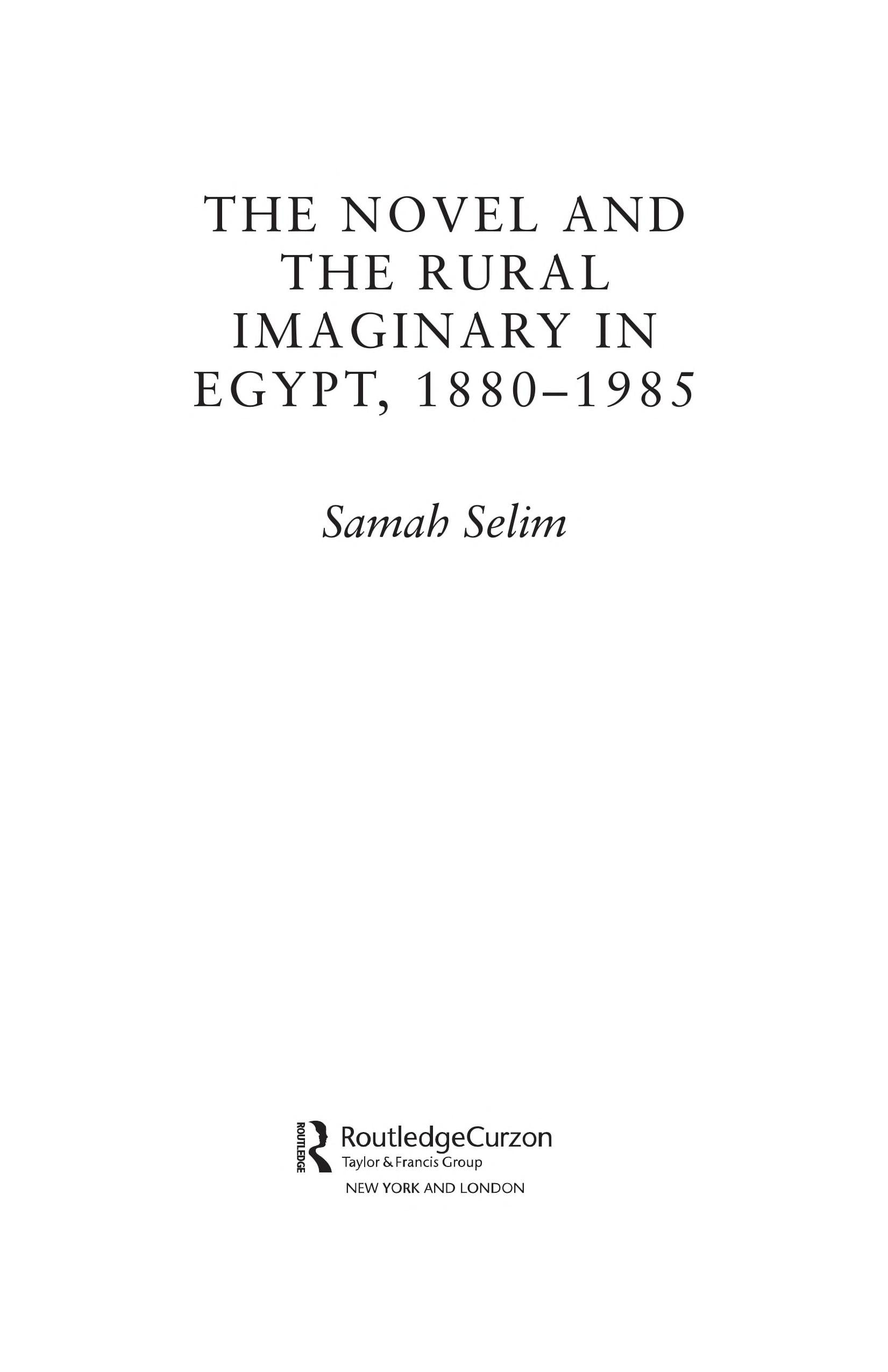 Selim, The Novel and the Rural Imaginary in Egypt, 1880-1985 (Routledge Studies