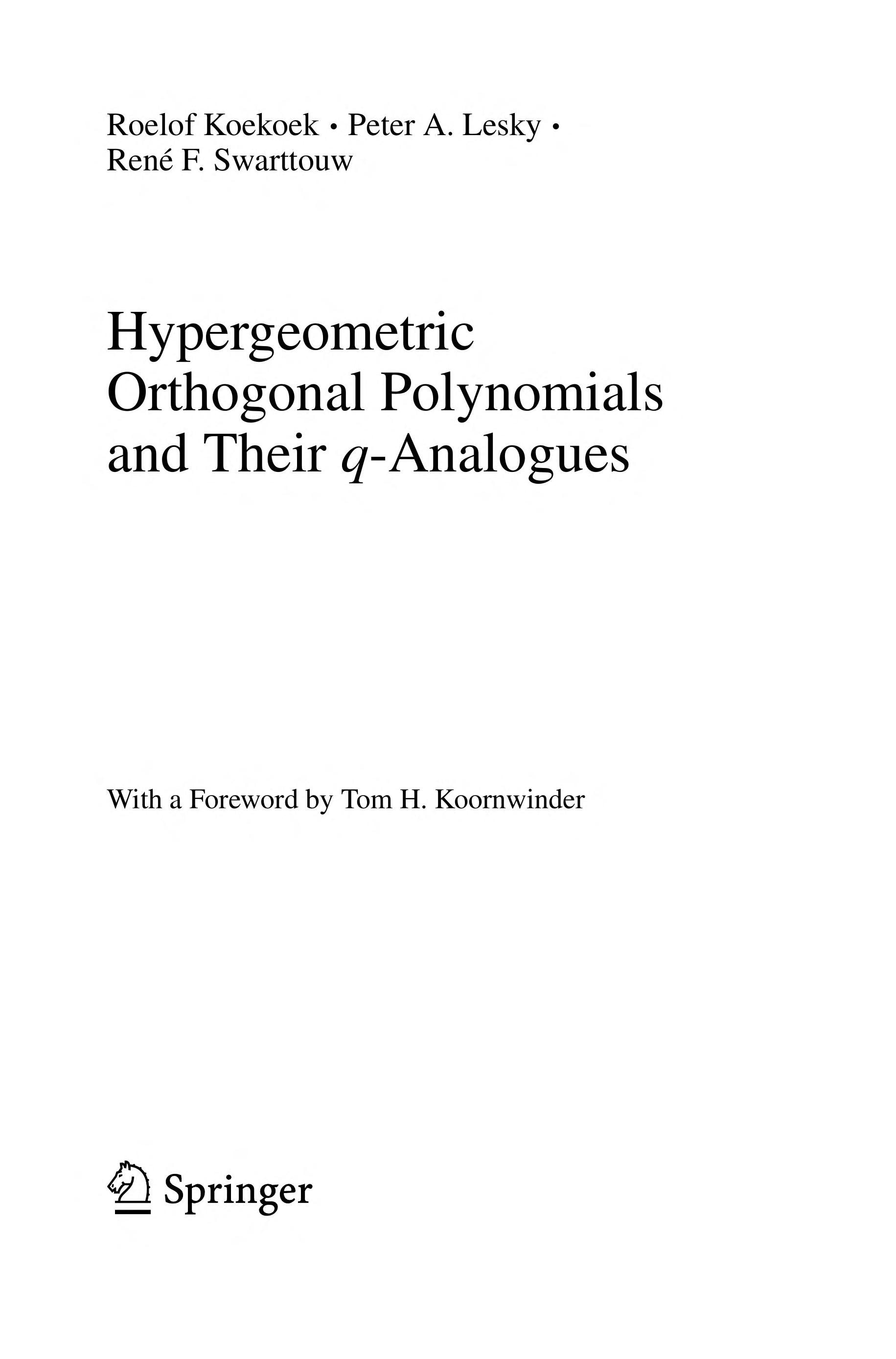Koekoek, Hypergeometric Orthogonal Polynomials and Their q-Analogues (Springer M…