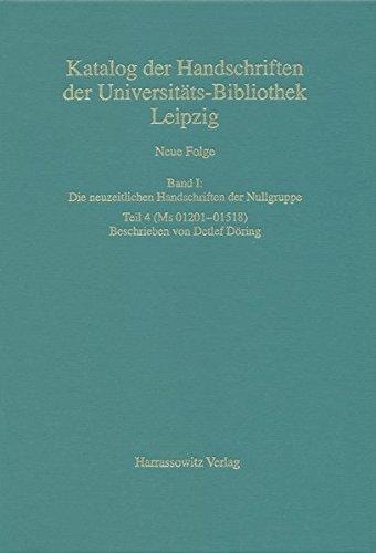 Doring, Detlef: Catalogus Codicum Manuscriptorum Bibliothecae Universitatis Lipsiensis /Katalog Der Handschriften Der Universitats-Bibliothek Leipzig / Neue Folge / … Nullgruppe (MS 01201-01518) (German Edition). 1. Aufl. Harrassowitz, 2005. 210 S. Hardcover. Versand aus Deutschland / We dispatch from Germany via Air Mail. Einband bestoßen, daher Mängelexemplar gestempelt, sonst sehr guter Zustand. Imperfect copy due to slightly bumped cover, apart from this in very good condition. Stamped.