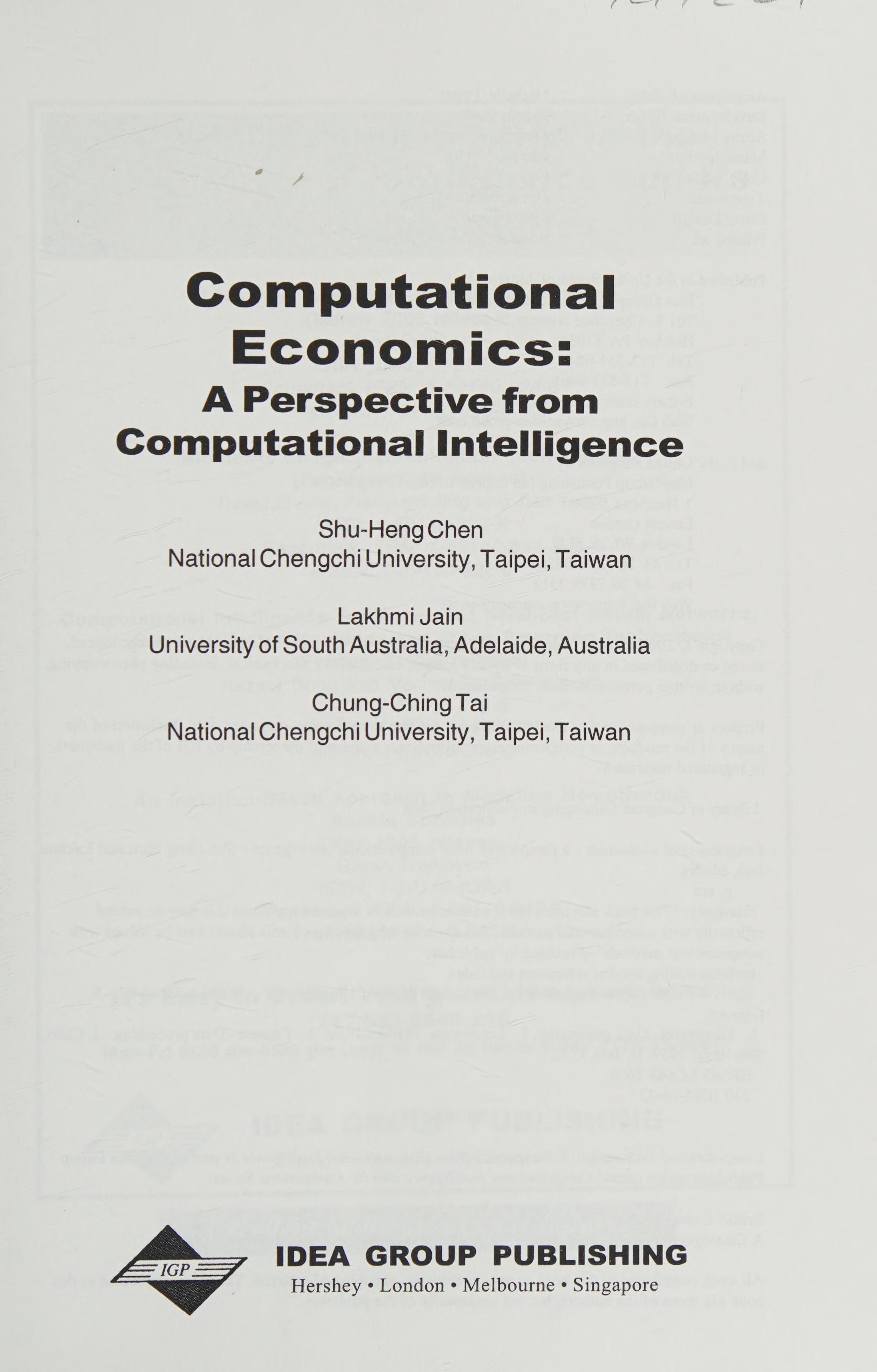 Chen, Shu-Heng/Jain, Lakhmi/Tai, Chung-Ching: Computational Economics: A Perspective from Computational Intelligence. Idea Group Publishing, 2005. 17 x 25 cm. 318 pages. HC Versand aus Deutschland / We dispatch from Germany via Air Mail. Einband bestoßen, daher Mängelexemplar gestempelt, sonst sehr guter Zustand. Imperfect copy due to slightly bumped cover, apart from this in very good condition. Stamped.