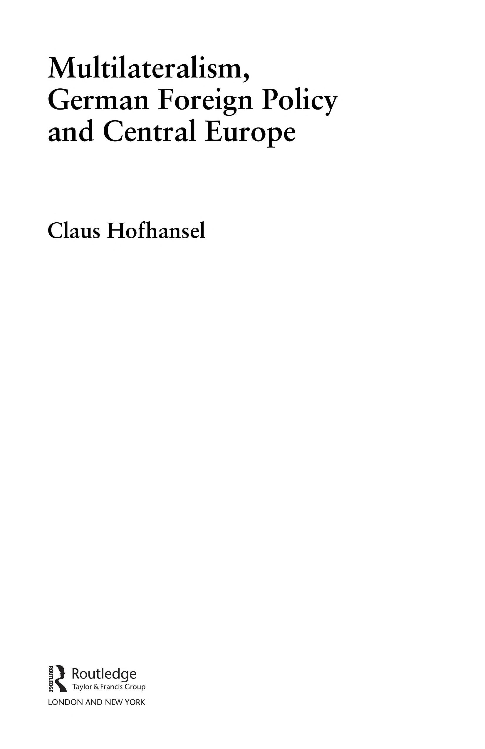Hofhansel, Multilateralism, German Foreign Policy and Central Europe (Routledge