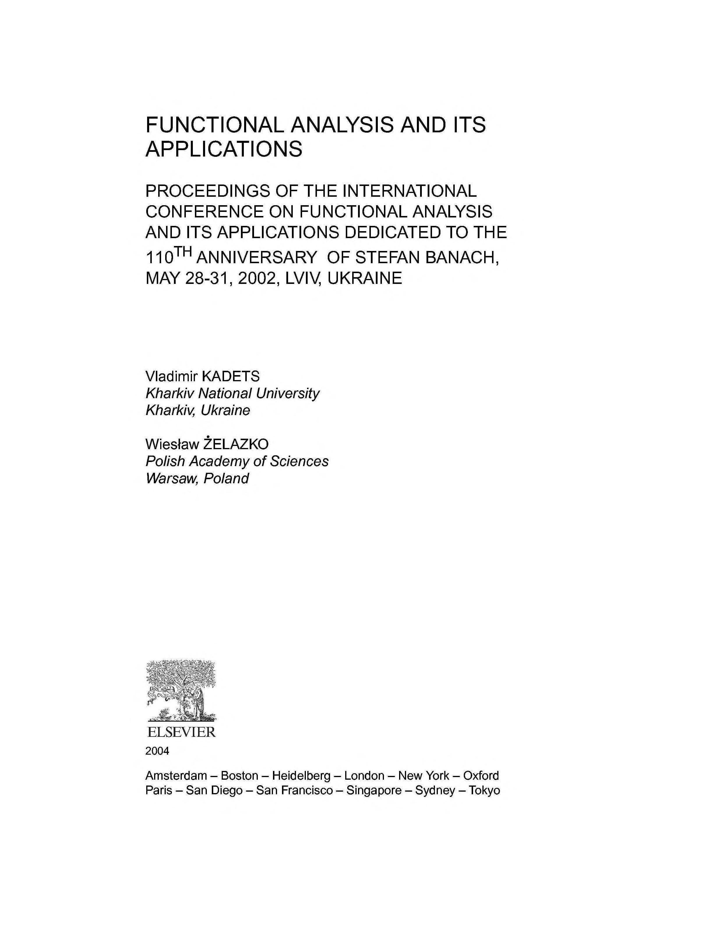 Kadets, Vladimir/Zelazko, Wieslaw Tadeusz: Functional Analysis and its Applications: Proceedings of the International Conference on Functional Analysis and its Applications dedicated to the … Mathematics Studies, Volume 197). 1st ed. Elsevier Science, 2004. 16 x 23 cm. 342 pages. HC Versand aus Deutschland / We dispatch from Germany via Air Mail. Einband bestoßen, daher Mängelexemplar gestempelt, sonst sehr guter Zustand. Imperfect copy due to slightly bumped cover, apart from this in very good condition. Stamped.