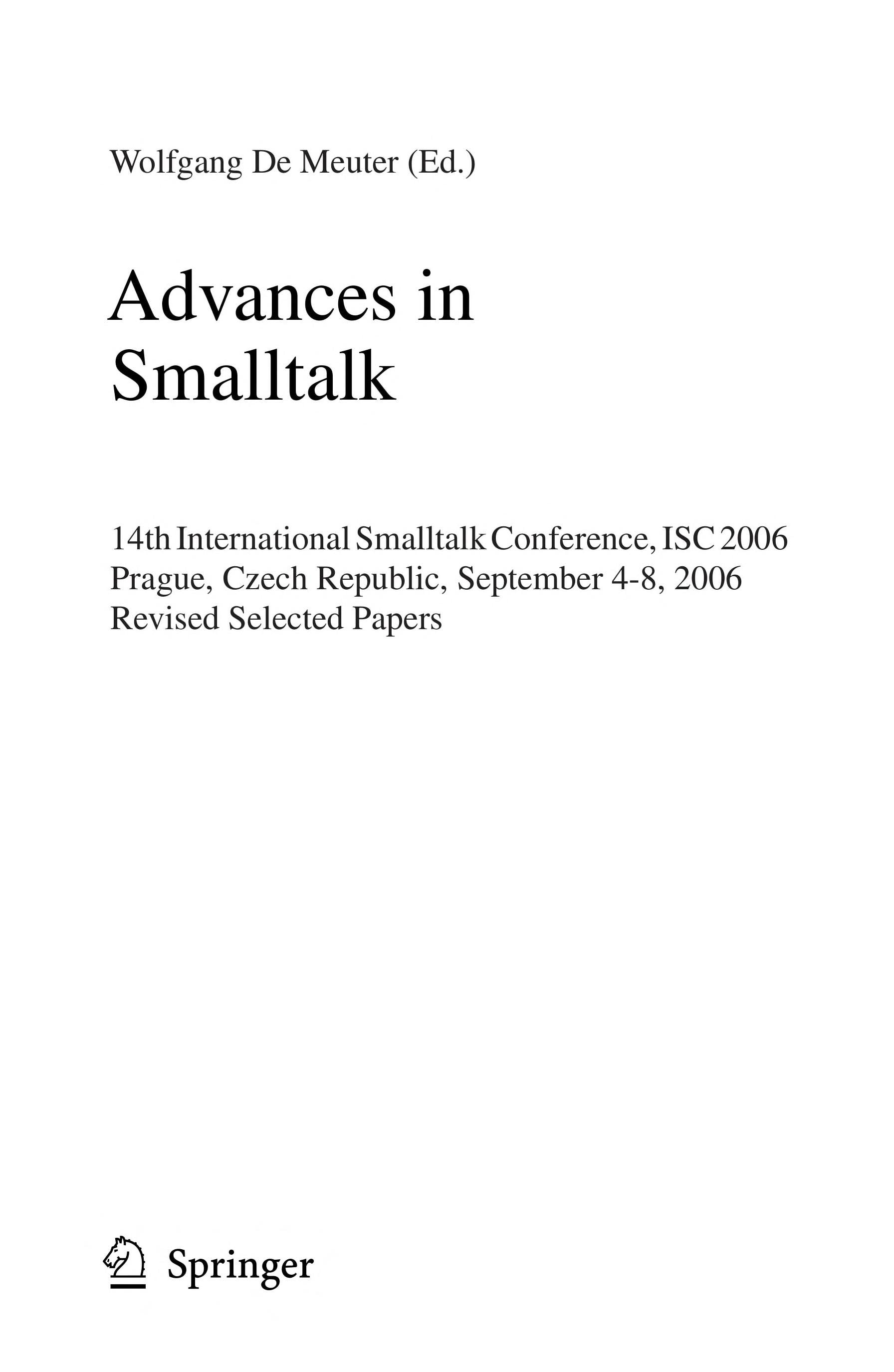 Prague, Advances in Smalltalk: 14th International Smaltalk Conference, ISC 2006,…