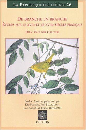 Cruysse, D Van Der: de Branche En Branche. Etudes Sur Les Xviie Et Xviiie Siecles Francais: ‘etudes Reunies Et Presentees Par Kris Peeters, Paul Pelckmans, Luc Rasson Et … (La République Des Lettres) (French Edition). Peeters, 2005. 24 x 16 cm. 276 S. Softcover. Versand aus Deutschland / We dispatch from Germany via Air Mail. Einband bestoßen, daher Mängelexemplar gestempelt, sonst sehr guter Zustand. Imperfect copy due to slightly bumped cover, apart from this in very good condition. Stamped.